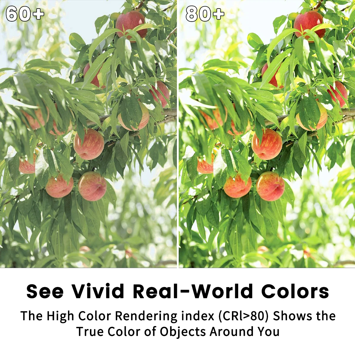 Color Temperature: Cold White 6500KThe emergency mode has three dimming levels: The first level provides 300LM and lasts for 2 hours. The second level provides 200LM and lasts for 3 hours. The third level provides 100LM and lasts for 6 hours.